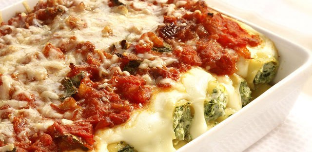 7. Τέλος, περιχύστε τα κανελόνια με την υπόλοιπη σάλτσα ντομάτας και ψήστε στους 180 oC για περίπου 30 λεπτά.