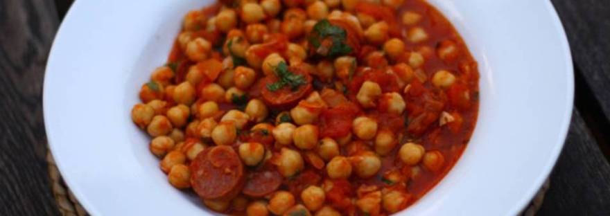 3. Στη συνέχεια προσθέτουμε τα βρασμένα ρεβίθια και την ντομάτα, αλατοπιπερώνουμε και αφήνουμε για 5 λεπτά στη φωτιά.